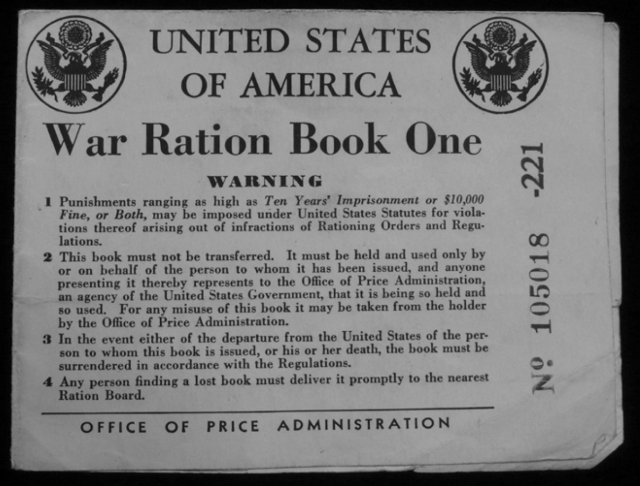 At the time of World War II in the United States, the nation had a lot more to worry about than the somewhat newly conceived notion of trick or treating. Many goods and services were unavailable to citizens on the home front, and in an effort to help alleviate hoarding, price hikes, and angry citizens, the Office of Price Administration printed War Ration Books that made it possible to trade stamps in exchange for goods. Since a huge portion of the United States’ sugar came from the Japanese occupied Philippines, sugar was one of the first items to be rationed. War Ration Book Number One—nicknamed the “Sugar Book”—was handed out on May 4, 1942.